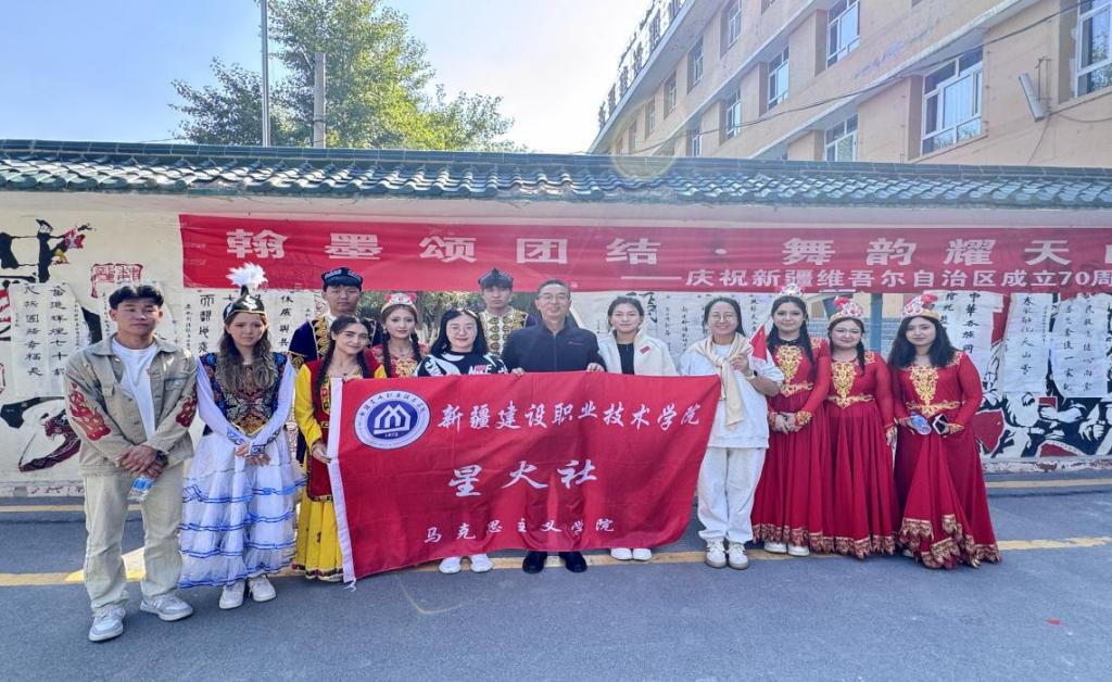 2025年9月25日至28日,为热烈庆祝新疆维吾尔自治区成立70周年,马克思主义学院指导星火社在三校区开展了“翰墨颂团结·舞韵耀天山”主题系列活动。通过歌舞表演、红色诗歌朗诵、书法创作等,以笔墨书写深情、以歌舞传递热爱、以真心凝聚力量,共同见证新疆从边疆明珠到团结沃土的壮美蝶变,让“中华民族一家亲”的种子在青春心田生根发芽!